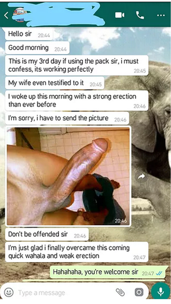 After using this PERFECT MAN SYRUP Anytime you are with your spouse, and you are in the mood of having Sex, you will have a solid hard rock erection instantly.